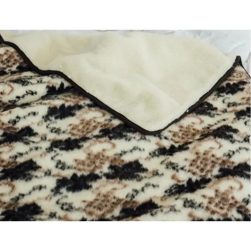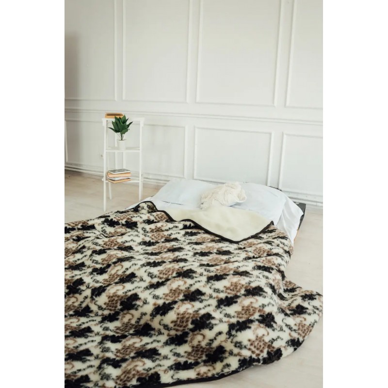 Шерстяне покривало двостороннє - зовнішня сторона з малюнком, внутрішня білого кольору, окантовка велюрова. Виготовлено із високоякісної овечої шерсті, по новітній техгології пошиву.